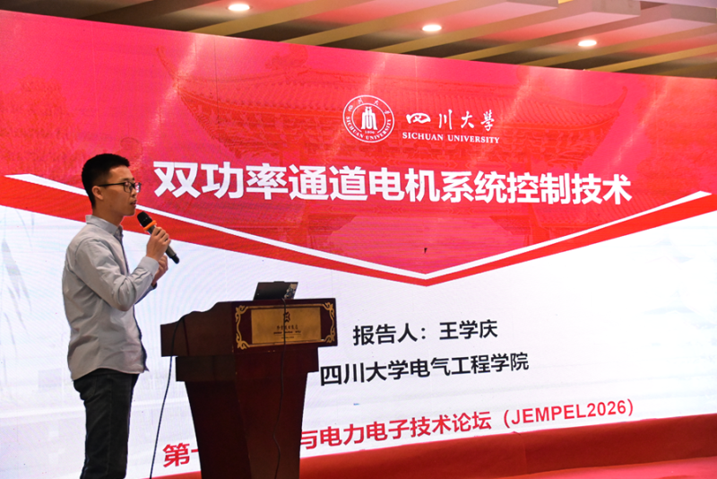 四川大学王学庆分享了双功率通道电机系统控制技术的研究成果。